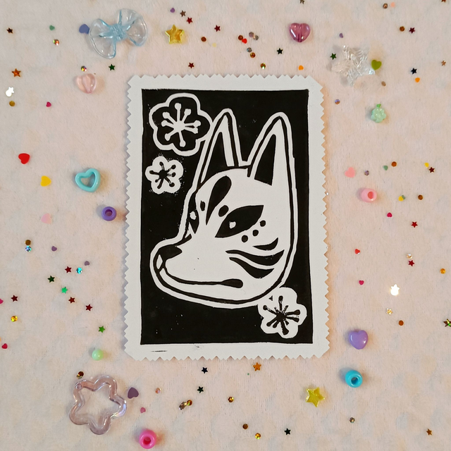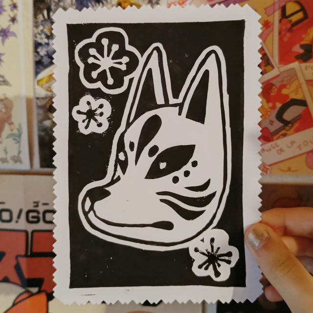 Japanese culture linocut prints